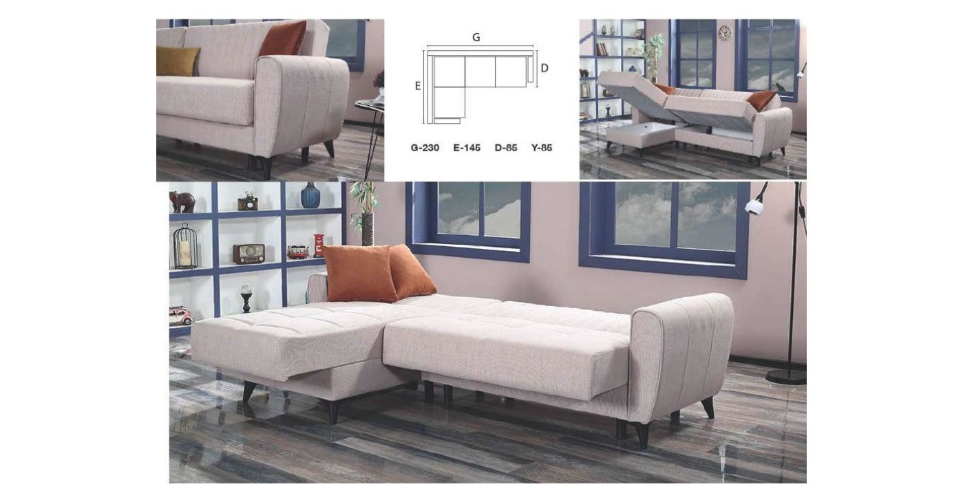 Ürün içeriği: 230x145CM boyutunda altı sandıklı. | Ürün iskeleti: Metal Profil & Suntalam dır. Kumaş Bilgisi: Yönsüz Kadife, Babyface, Keten, Nubuk vb. İsteğe bağlı kumaştan yapılabilir, fiyat farkı ödemesi yapılaraktan. Tüm renk seçenekleri mevcuttur. | Ayaklar: Plastik | Sağ Sol evir çevir yapabilirsiniz kolları.