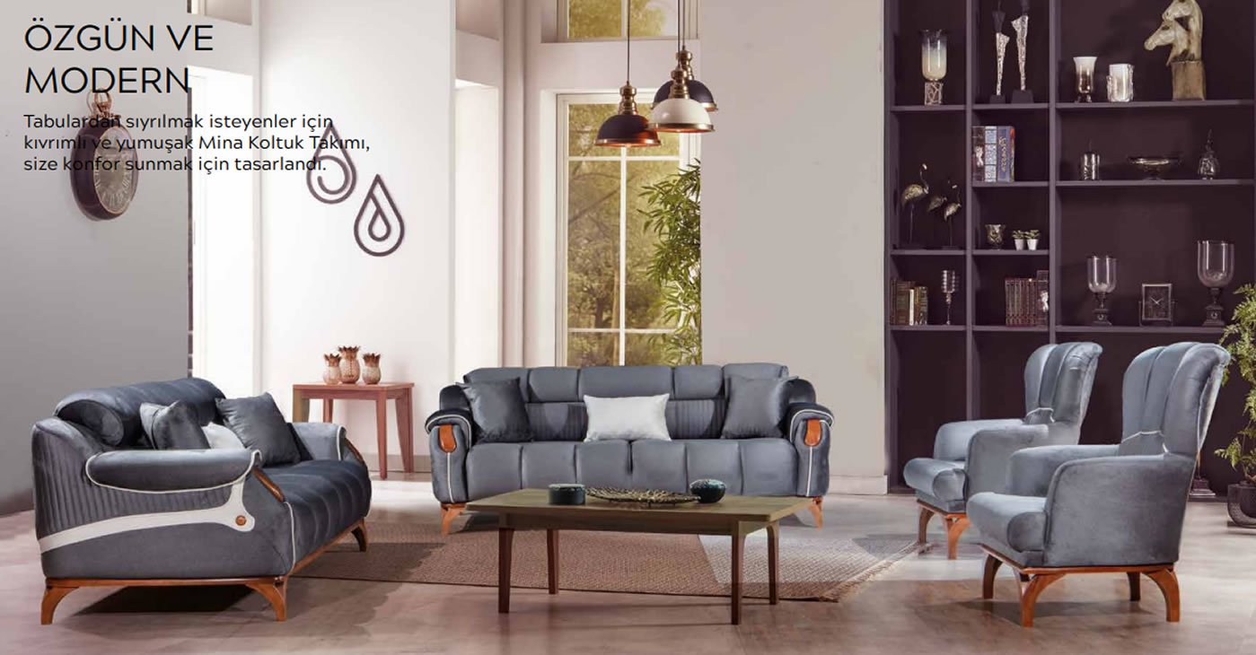 Ürün içeriği: 3 + 3 + 1 + 1 takımdan oluşmaktadır. | Ürün iskeleti: Gürgen, Kavak, Kontraplak dır. Kumaş Bilgisi: Yönsüz Kadife, Babyface, Keten, Nubuk vb. İsteğe bağlı kumaştan yapılabilir, fiyat farkı ödemesi yapılaraktan. Tüm renk seçenekleri mevcuttur. Sünger: 28 Dansity Soft sünger kullanılmıştır. | Sırttan yatırmalı yatak olma özelliğine sahiptir. Ayaklar: Ahşap