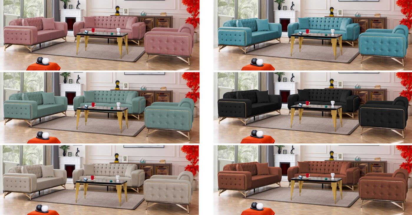Ürün içeriği: 3 + 2 + 1 takımdan oluşmaktadır. | Ürün iskeleti: Gürgen, Kavak, Kontraplak dır. Kumaş Bilgisi: Yönsüz Kadife, Babyface, Keten, Nubuk vb. İsteğe bağlı kumaştan yapılabilir, fiyat farkı ödemesi yapılaraktan. Tüm renk seçenekleri mevcuttur. Sünger: 32 Dansity Soft sünger kullanılmıştır. | Sırttan yatırmalı yatak olma özelliğine sahiptir. Ayaklar: Metal