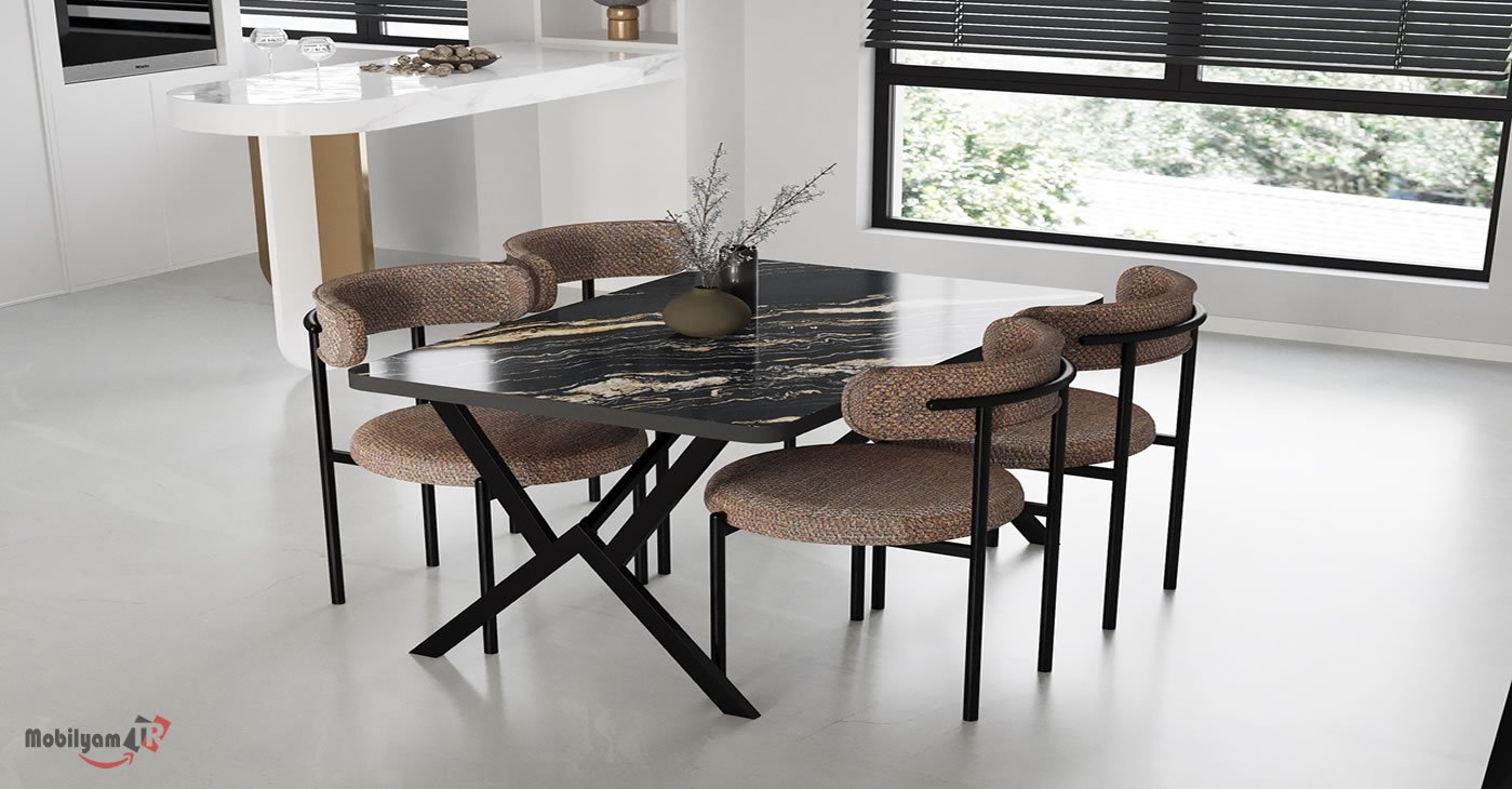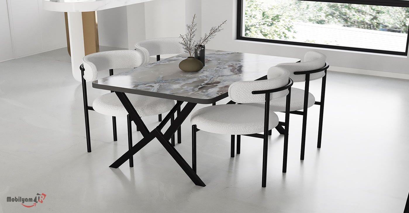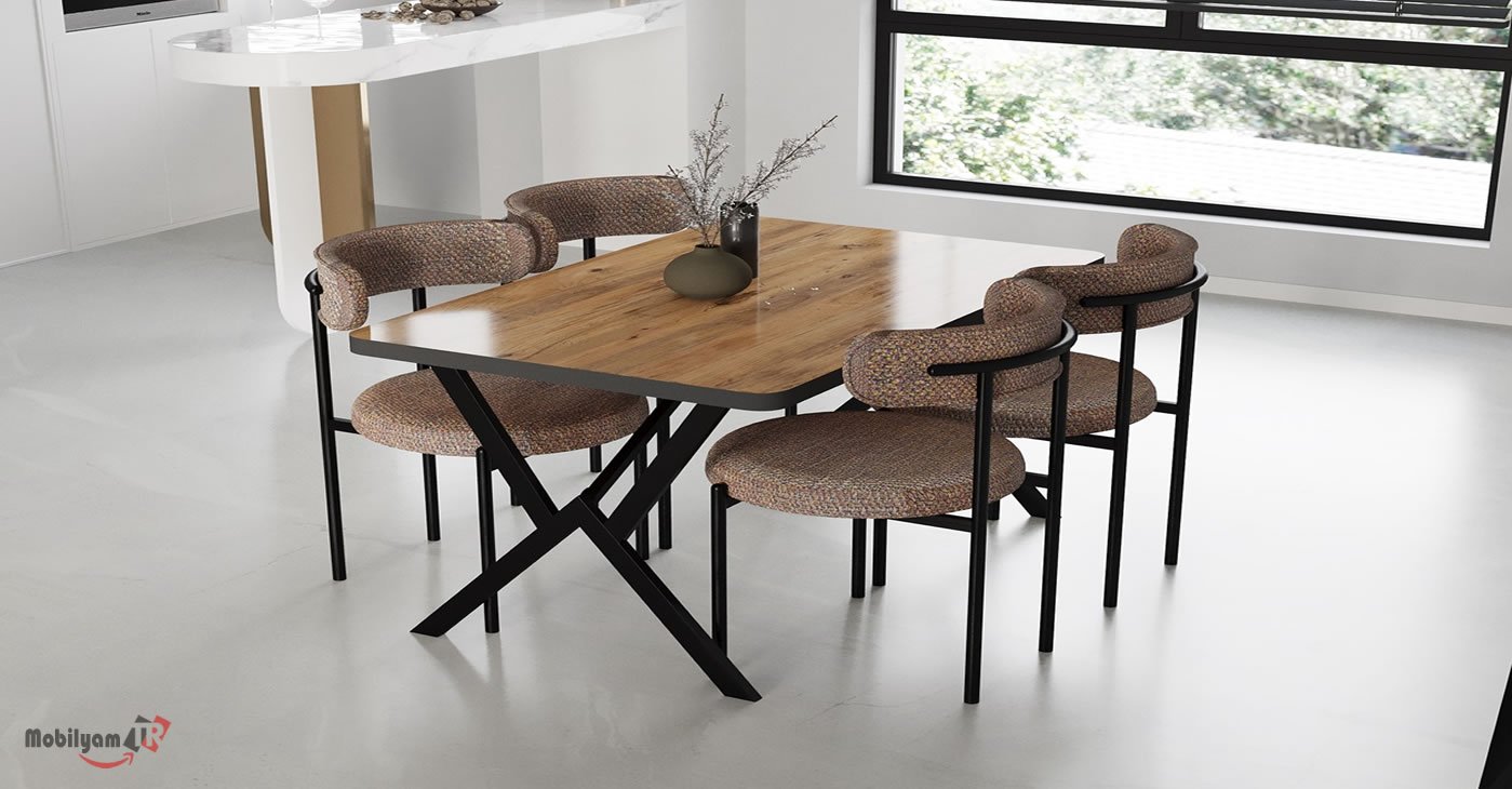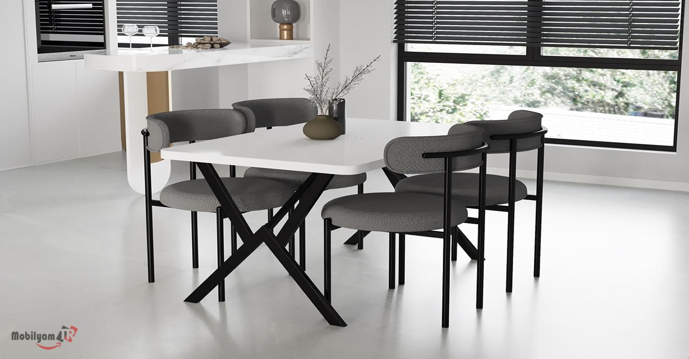 Ürünümüz 4 sandalye ve 1 masadan oluşan bir takımdır. Tüm kumaş renk seçenekleri mevcuttur. Masa ölçüsü 80 x 120 | Ürün suntalam. | Ürün stok durumu mevcuttur. Sandalye adet fiyatı 850 TL dir.
